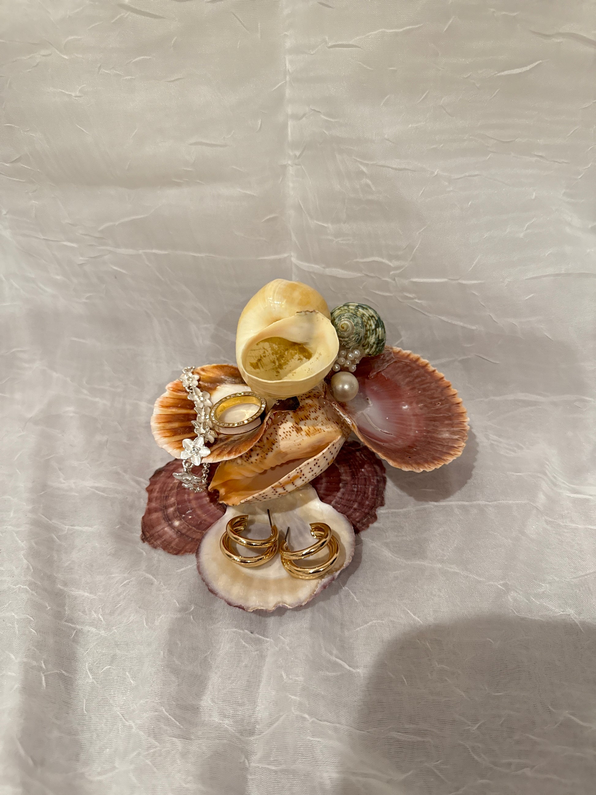 Small in size but big on charm, the Petite Coral Bloom Jewelry Stand is the perfect accent for keeping your favorite rings and earrings close at hand. Handcrafted from genuine seashells in warm coral, cream, and blush tones, this miniature display brings the beauty of the ocean to your vanity or nightstand. Accented with delicate pearl details and layered shell “petals,” it’s ideal for holding everyday jewelry while adding a coastal touch to your space.